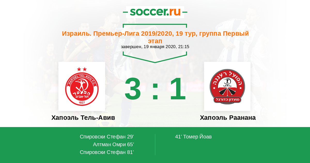 Протокол матча Хапоэль Тель-Авив против Хапоэль Раанана