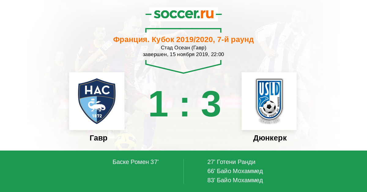 Протокол матча Гавр против Дюнкерк