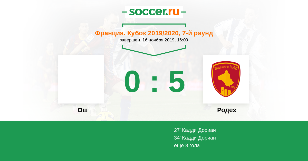 Протокол матча Ош против Родез