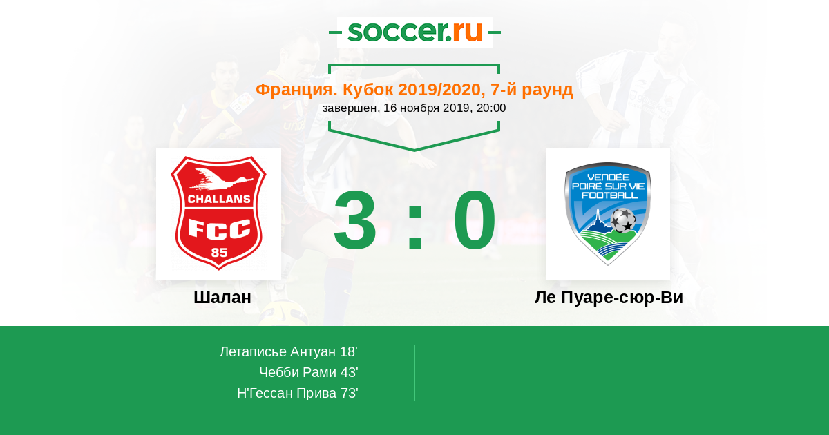 Протокол матча Шалан против Ле Пуаре-сюр-Ви