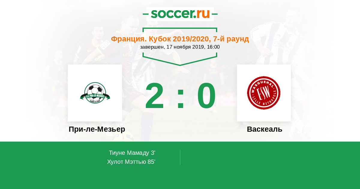 Протокол матча При-ле-Мезьер против Васкеаль