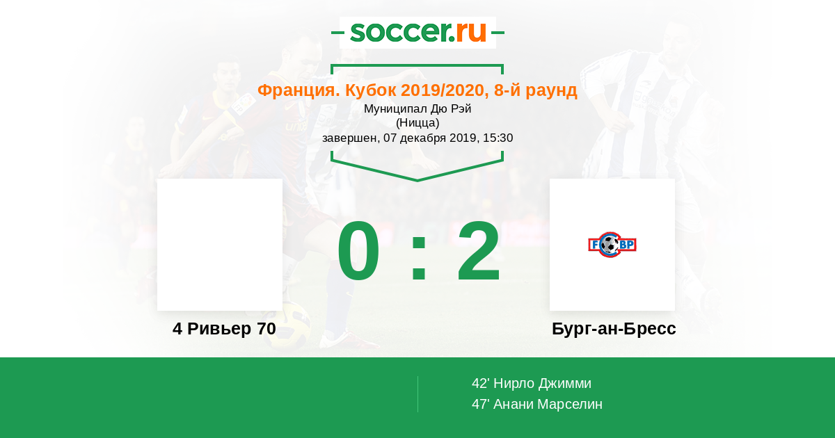 Протокол матча 4 Ривьер 70 против Бург-ан-Бресс