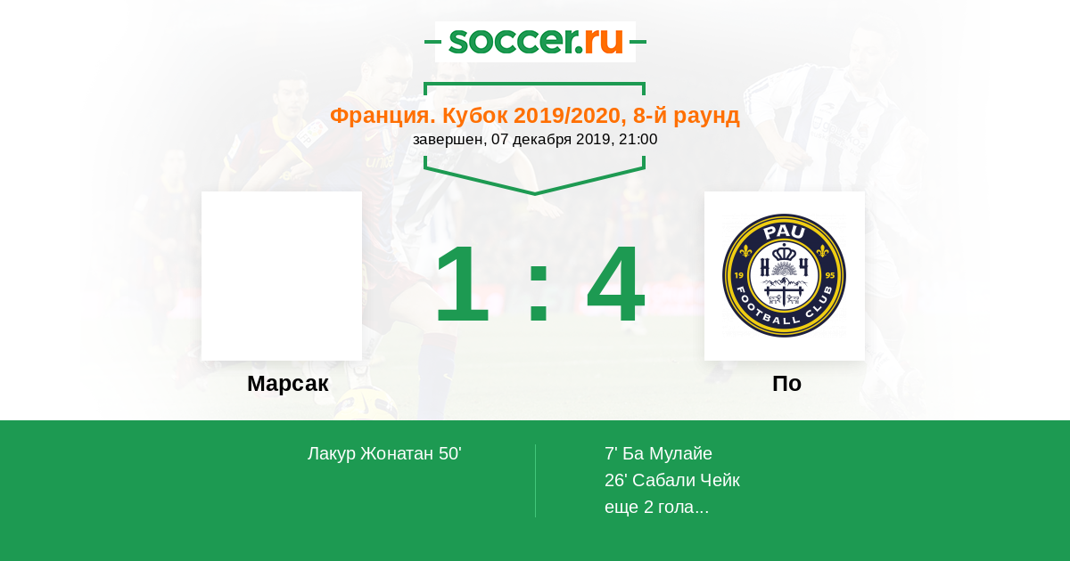 Протокол матча Марсак против По