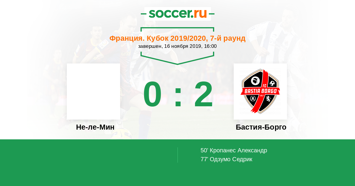 Протокол матча Не-ле-Мин против Бастия-Борго