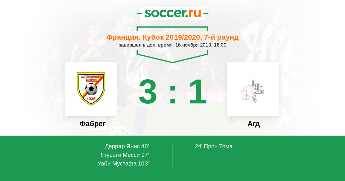 Протокол матча Фабрег против Агд