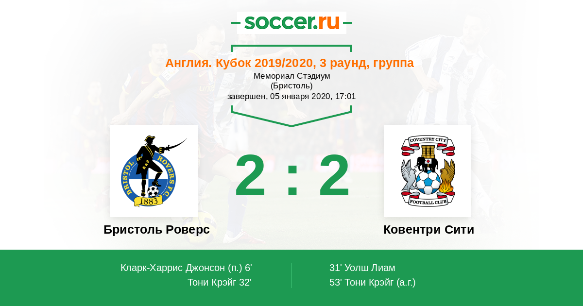 Протокол матча Бристоль Роверс против Ковентри Сити