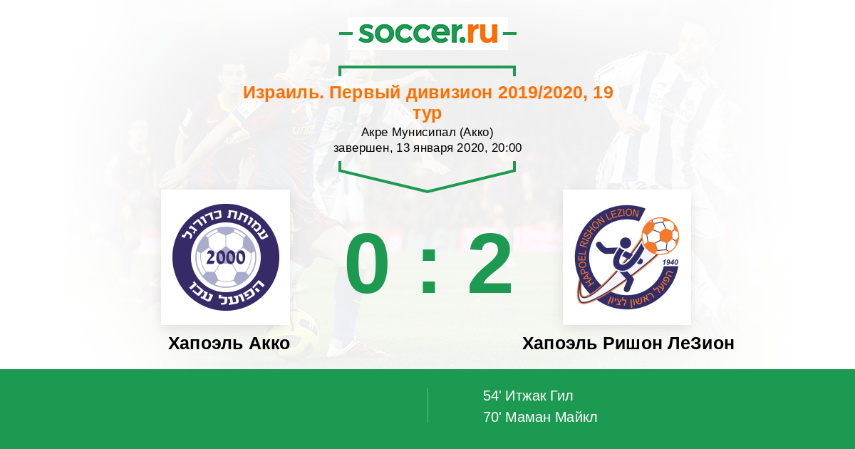 Протокол матча Хапоэль Акко против Хапоэль Ришон ЛеЗион