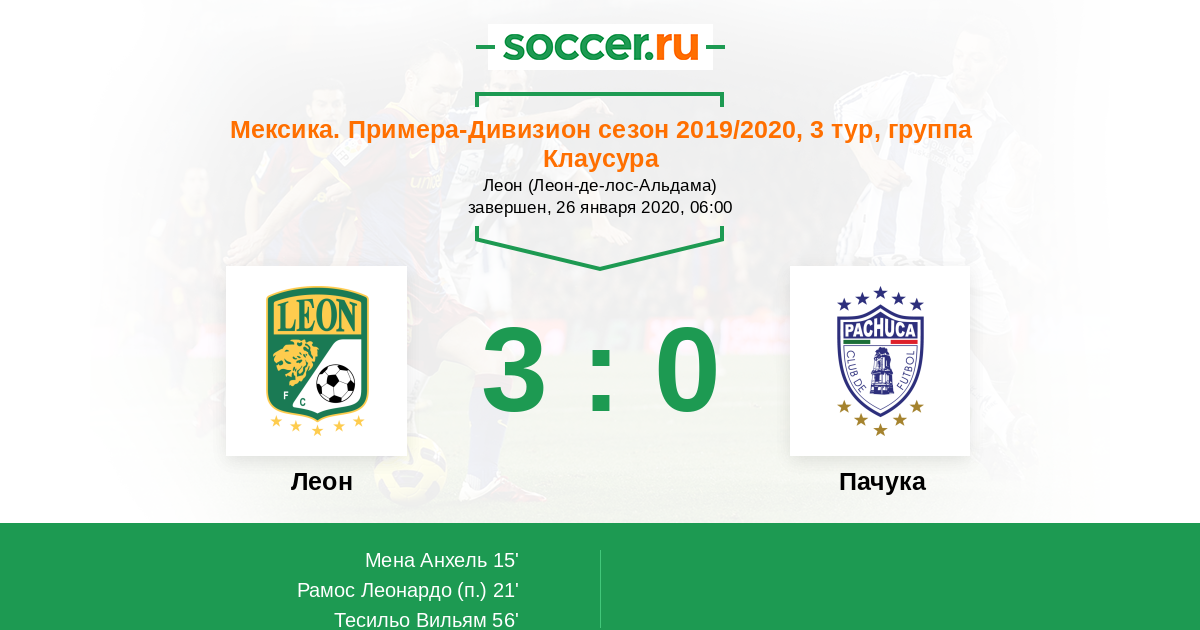 15' (1:0) Мена Анхель (13) (Рамос Леонардо (9))