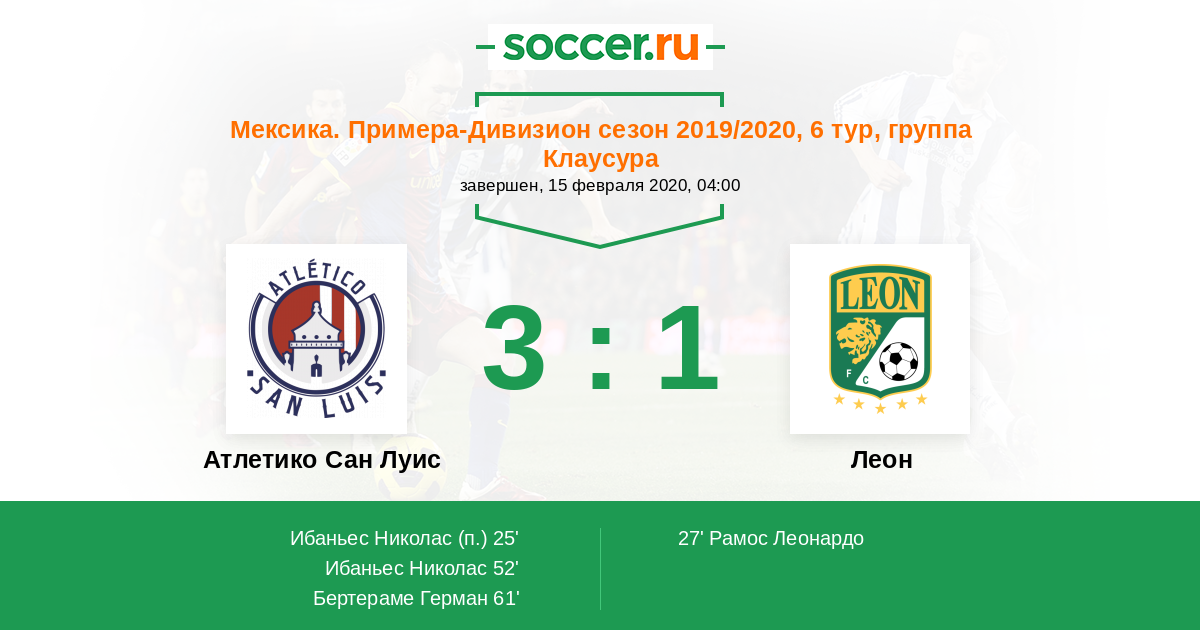 52' (2:1) Ибаньес Николас (9) (Леон Луис Фернандо (30))