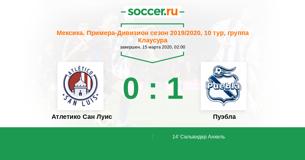 Протокол матча Атлетико Сан Луис против Пуэбла