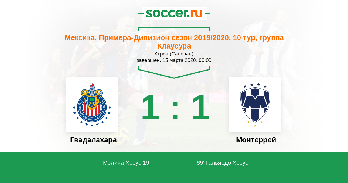 Протокол матча Гвадалахара против Монтеррей