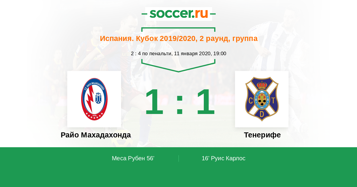 Протокол матча Райо Махадахонда против Тенерифе