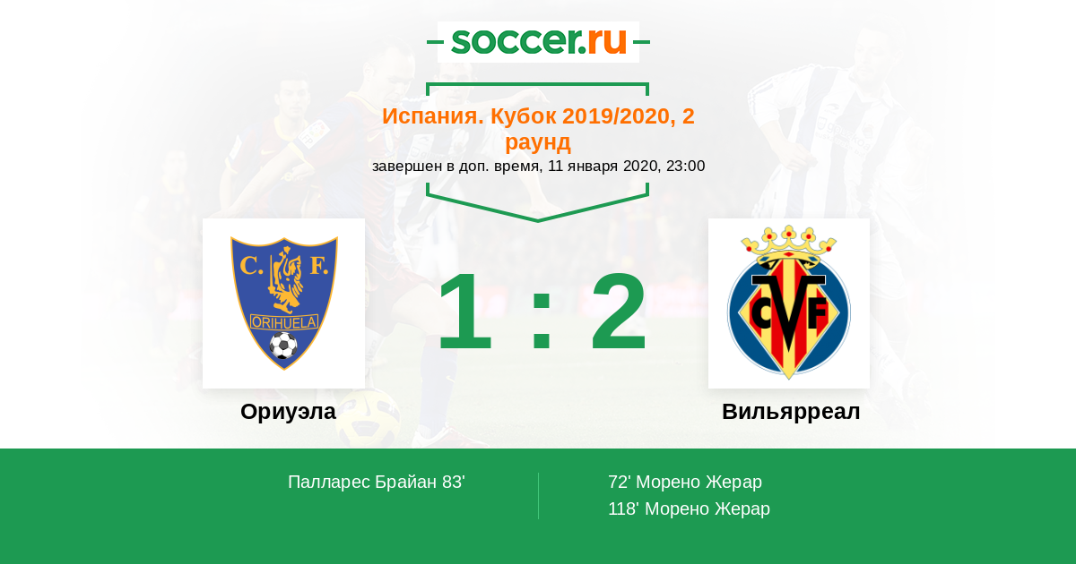 Протокол матча Ориуэла против Вильярреал