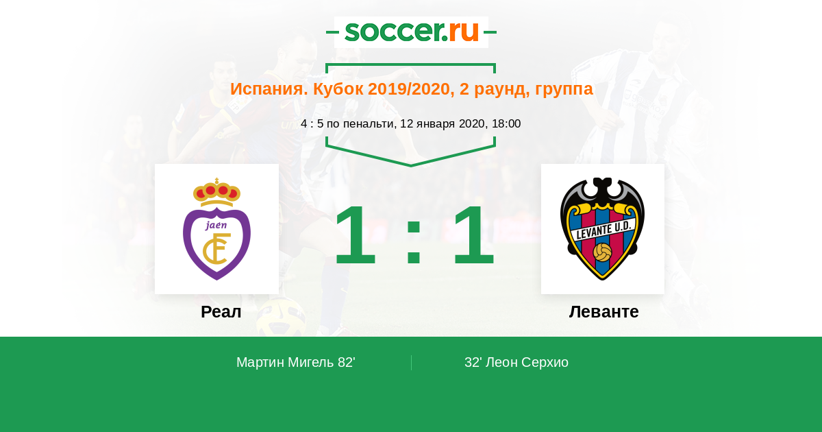 32' (0:1) Леон Серхио (7) (Эрнани (8))