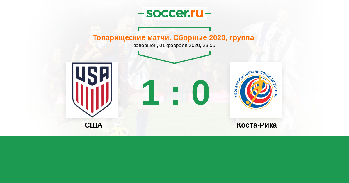 Товарищеские матчи. Сборные 02.02.2019 США Логотип США 2:0 Логотип Коста-Рика Коста-Рика