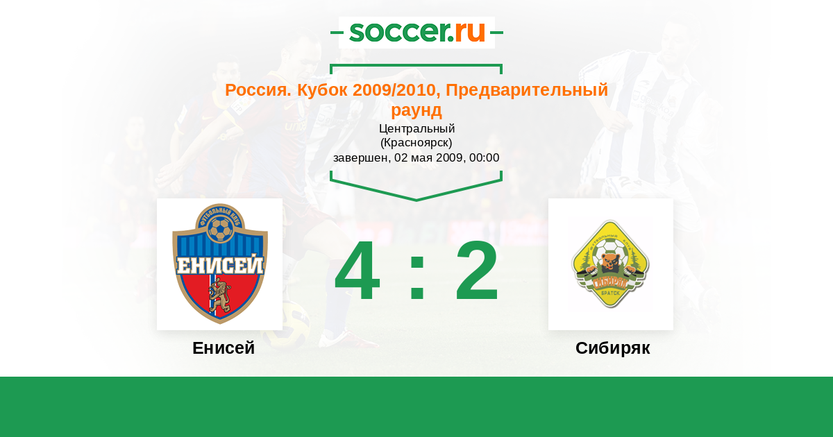 Россия. 2-й дивизион. Восток 02.09.2009 Енисей Логотип футбольный клуб Енисей (Красноярск) 0:0 Логотип футбольный клуб Сибиряк (Братск) Сибиряк