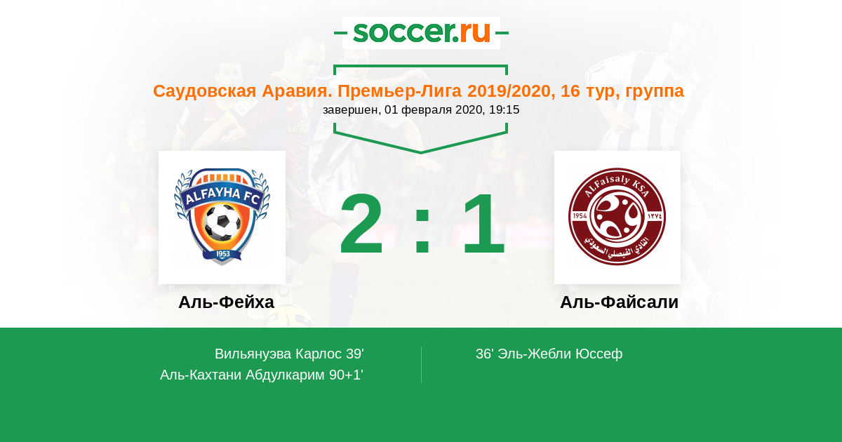 Протокол матча Аль-Фейха против Аль-Файсали