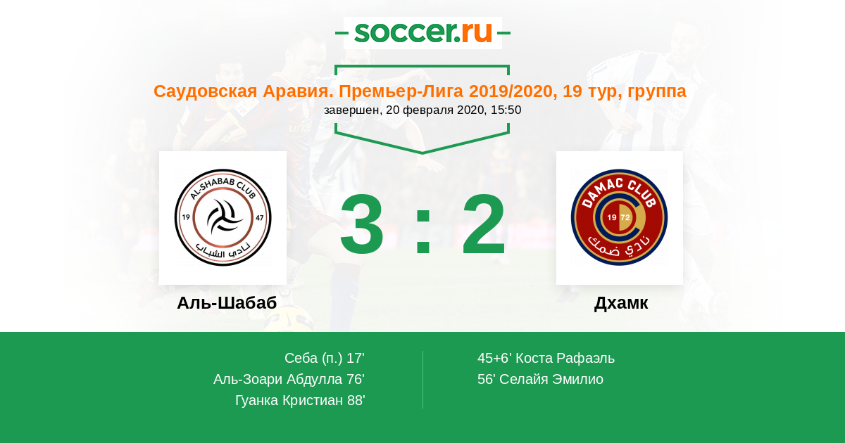 Протокол матча Аль-Шабаб против Дамак