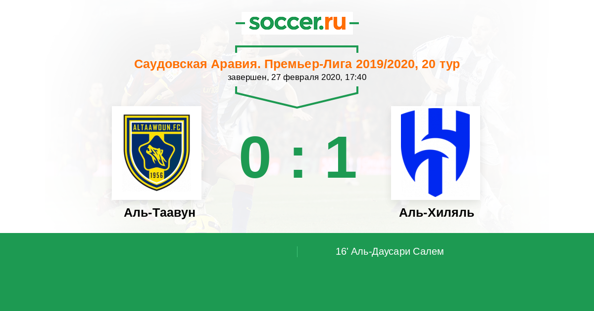 Протокол матча Аль-Таавун против Аль-Хиляль