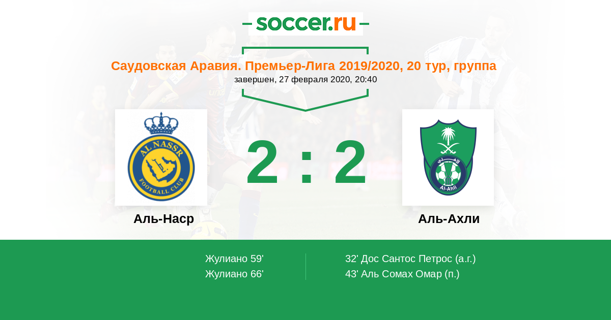 Протокол матча Аль-Наср против Аль-Ахли