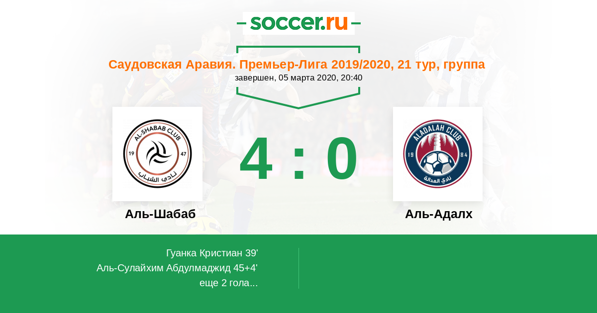 Протокол матча Аль-Шабаб против Аль-Адалх