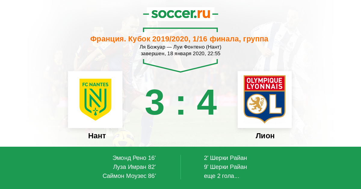 Протокол матча Нант против Лион