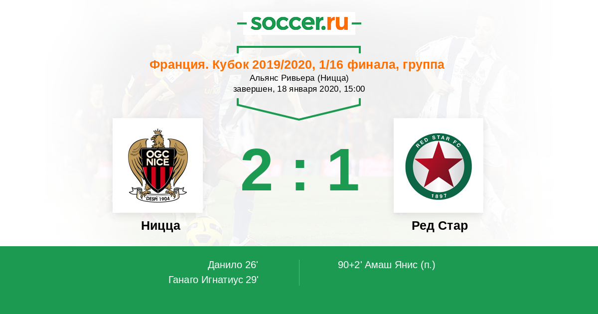 Протокол матча Ницца против Ред Стар