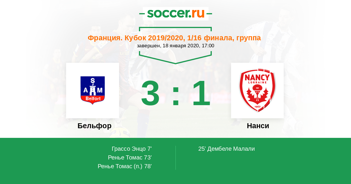 Протокол матча Бельфор против Нанси
