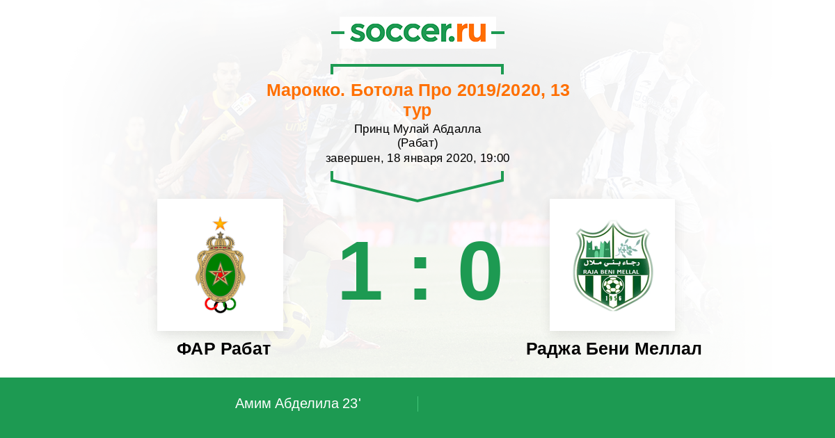 Протокол матча ФАР Рабат против Раджа Бени Меллал