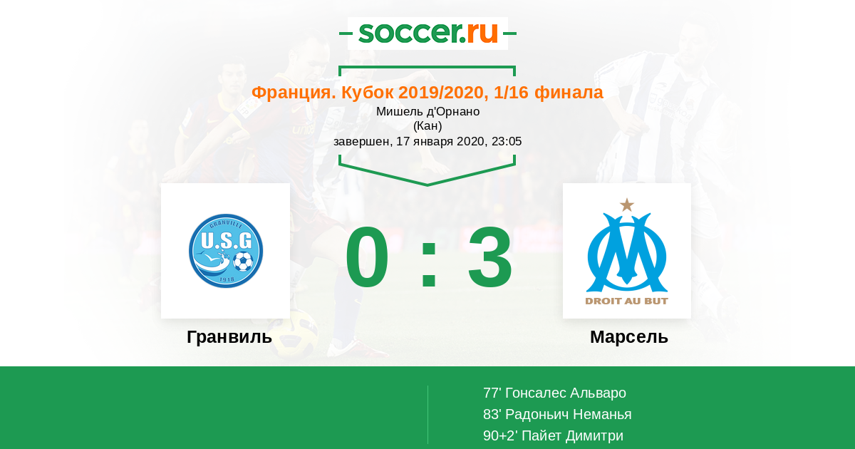 Протокол матча Гранвиль против Марсель