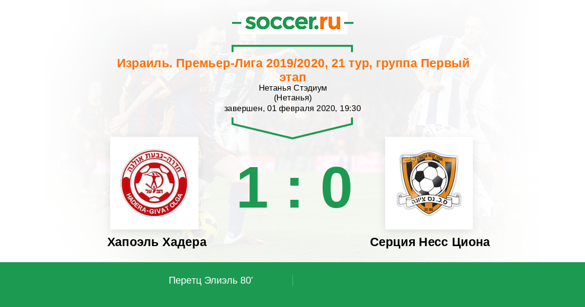 Протокол матча Хапоэль Хадера против Серция Несс Циона