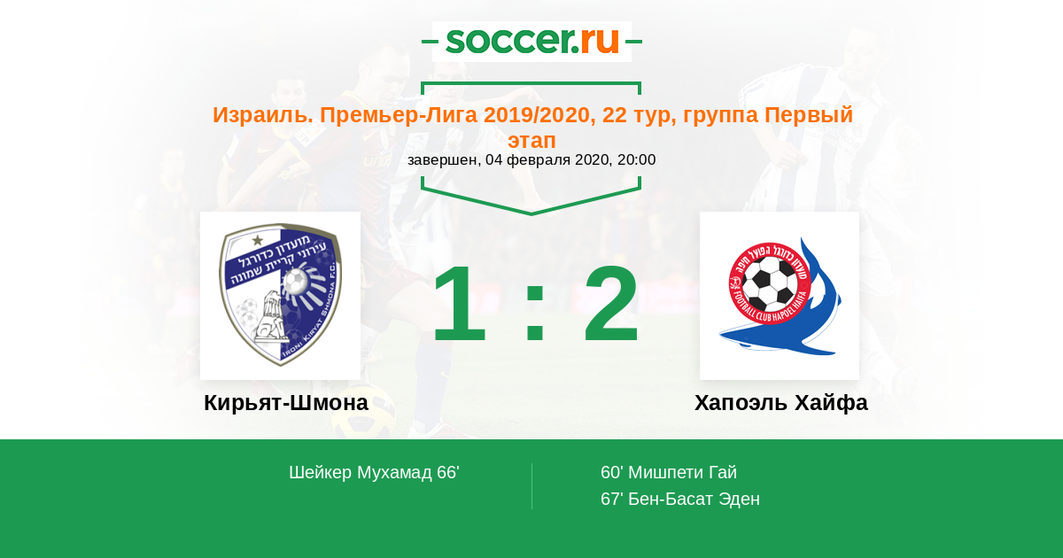 Протокол матча Кирьят-Шмона против Хапоэль Хайфа