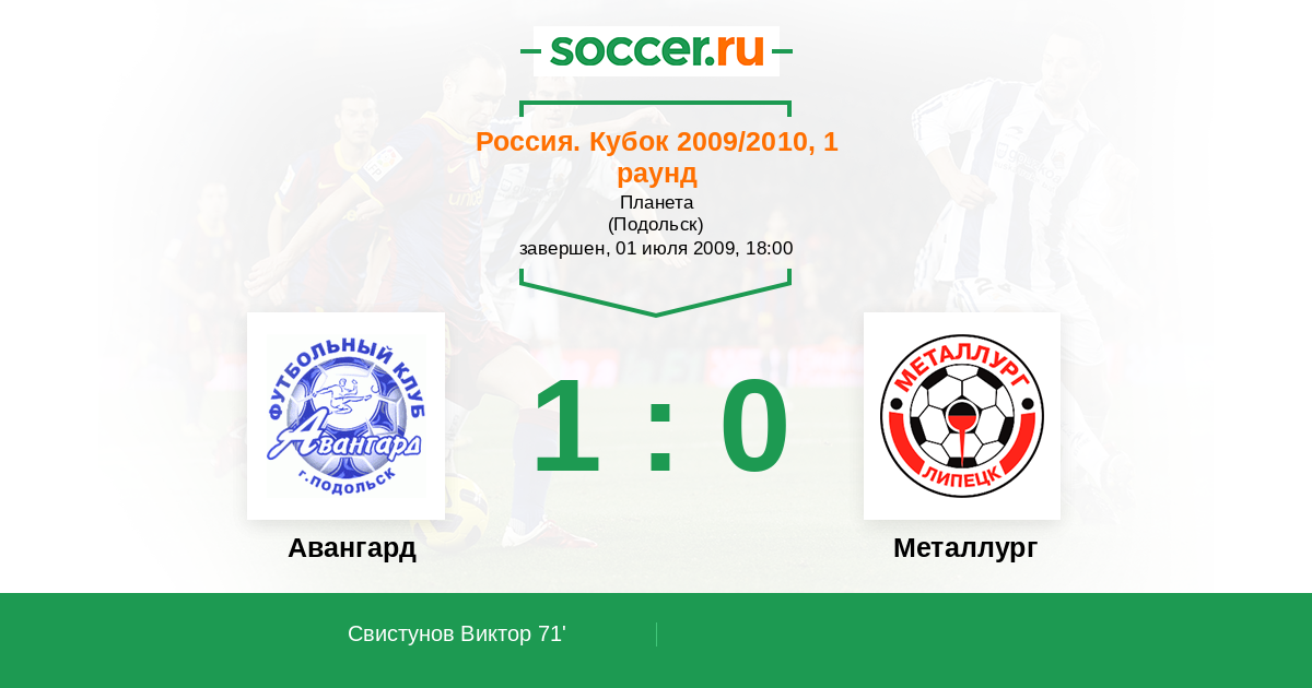 Протокол матча Авангард против Металлург