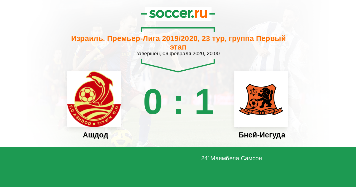 Протокол матча Ашдод против Бней-Иегуда