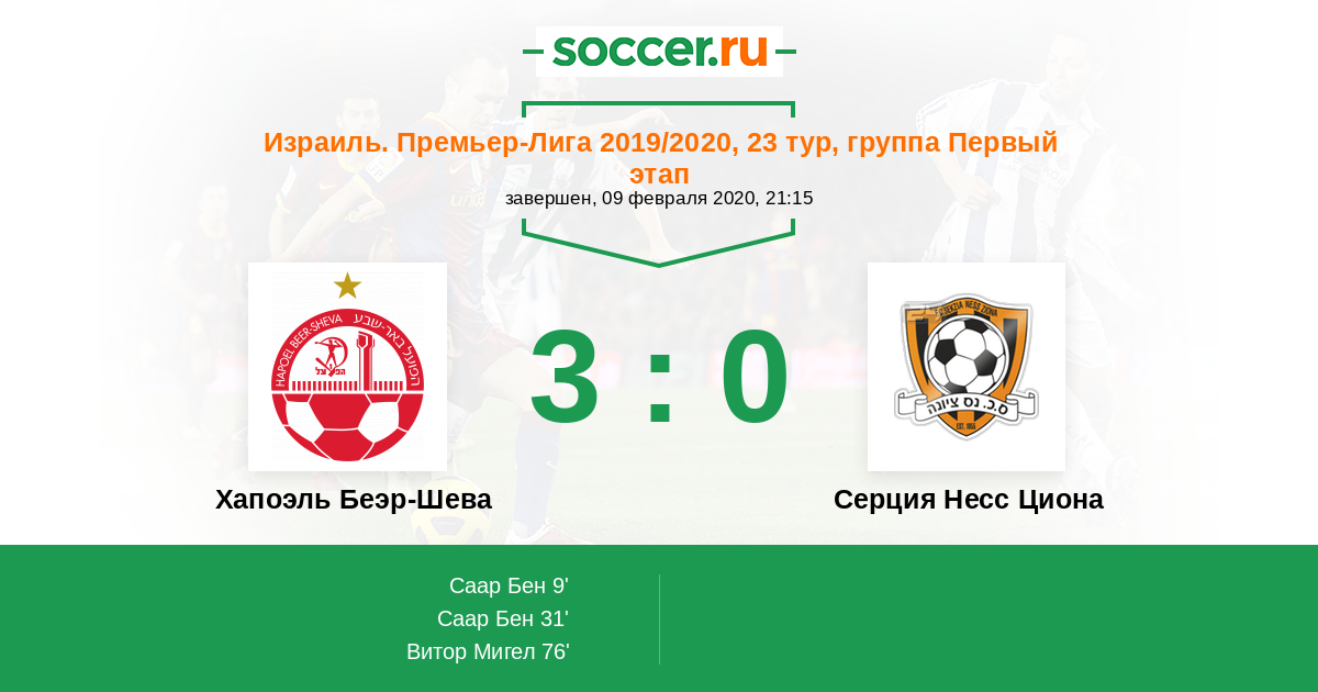 Протокол матча Хапоэль Беэр-Шева против Серция Несс Циона
