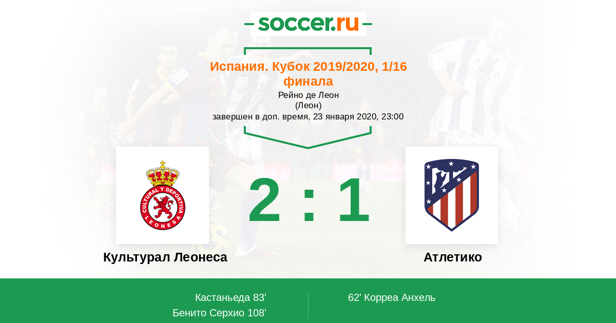 Протокол матча Культурал Леонеса против Атлетико