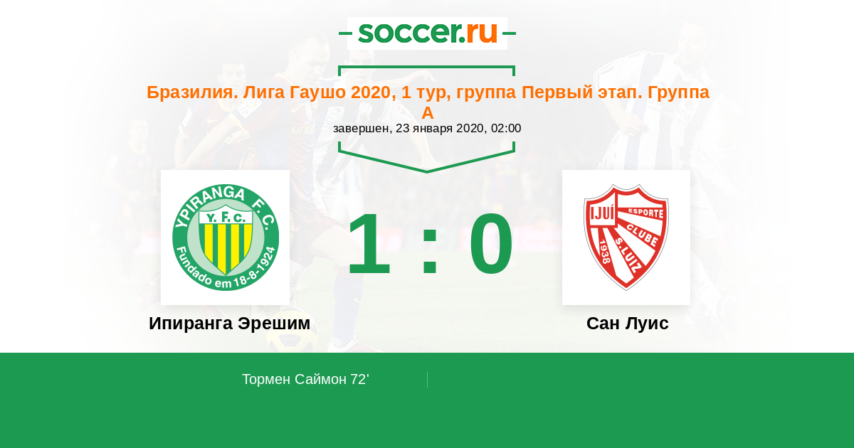 Протокол матча Ипиранга Эрешим против Сан Луис