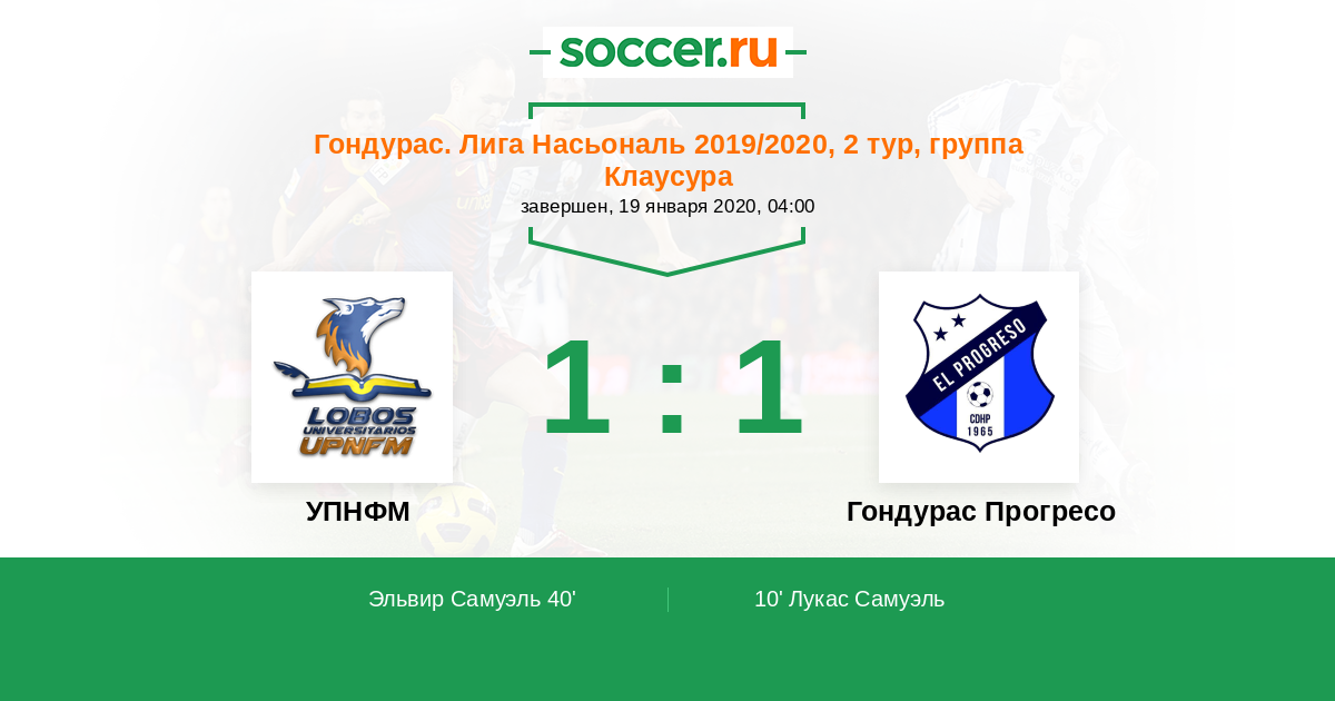 Протокол матча УПНФМ против Гондурас Прогресо