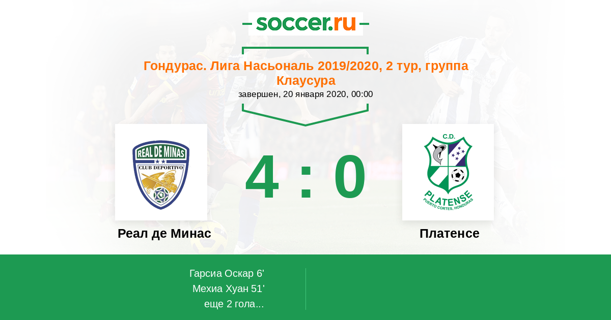 Протокол матча Реал де Минас против Платенсе