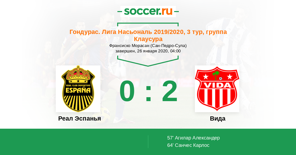 Протокол матча Реал Эспанья против Вида