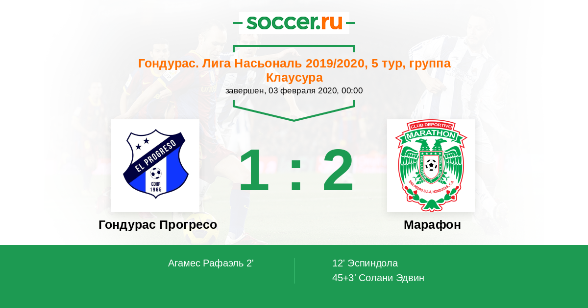 Протокол матча Гондурас Прогресо против Марафон