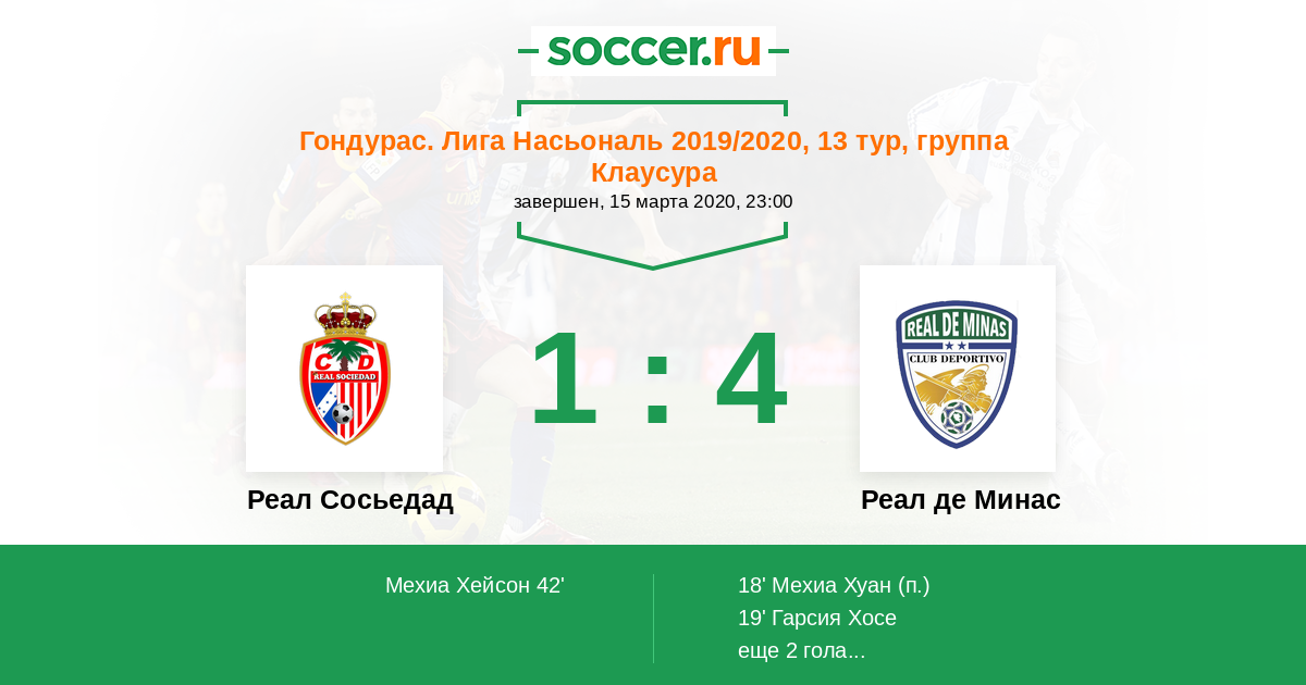 Протокол матча Реал Сосьедад против Реал де Минас
