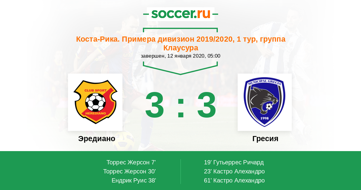Протокол матча Эредиано против Гресия