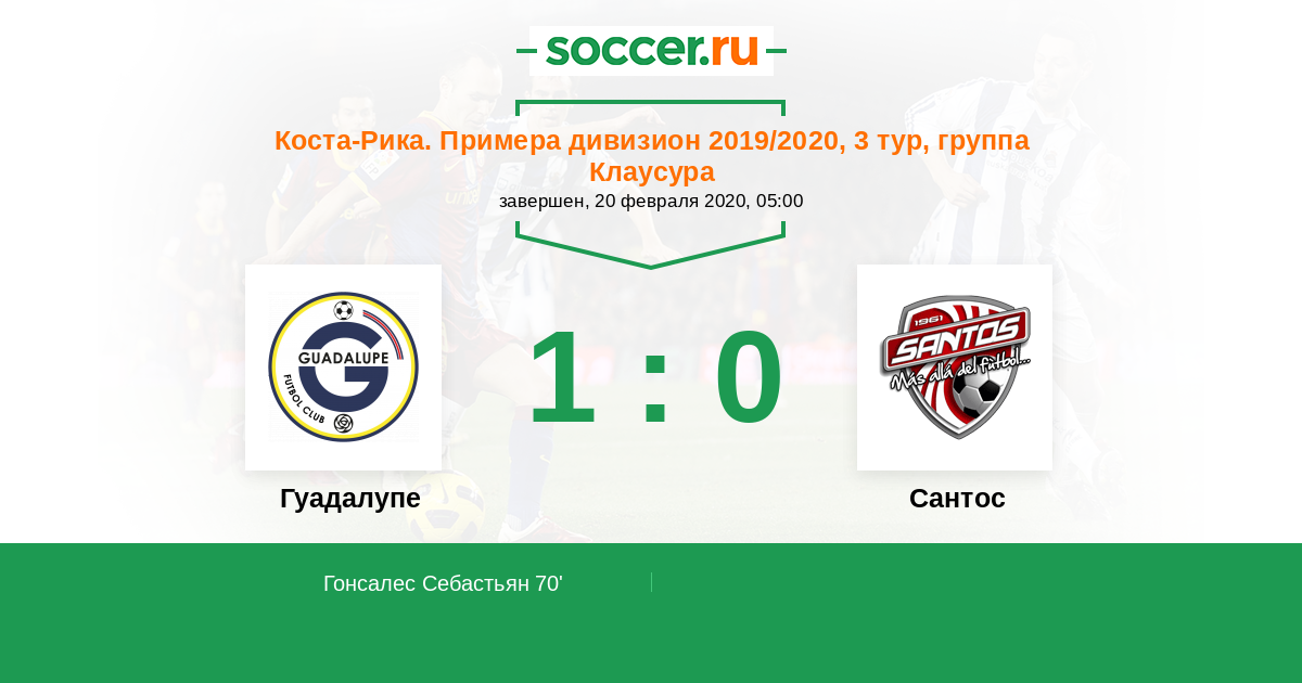 Протокол матча Гуадалупе против Сантос