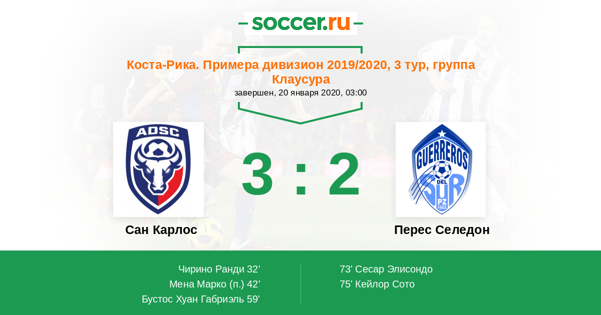 Протокол матча Сан Карлос против Зеледон