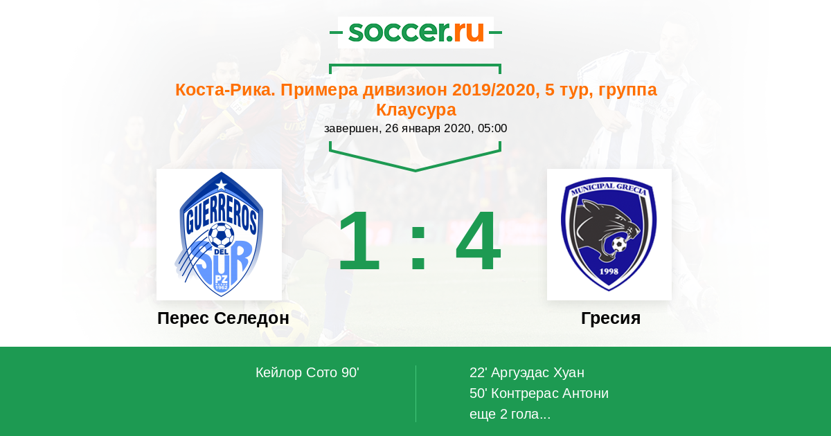 Протокол матча Зеледон против Гресия
