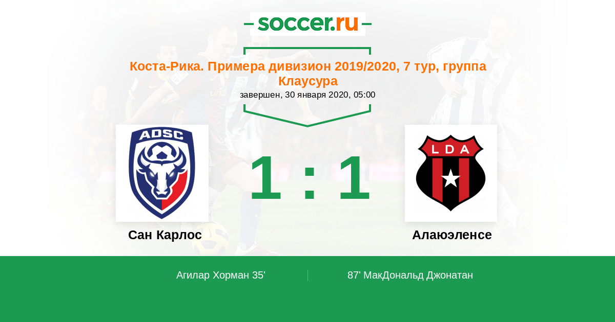 Протокол матча Сан Карлос против Алаюэленсе