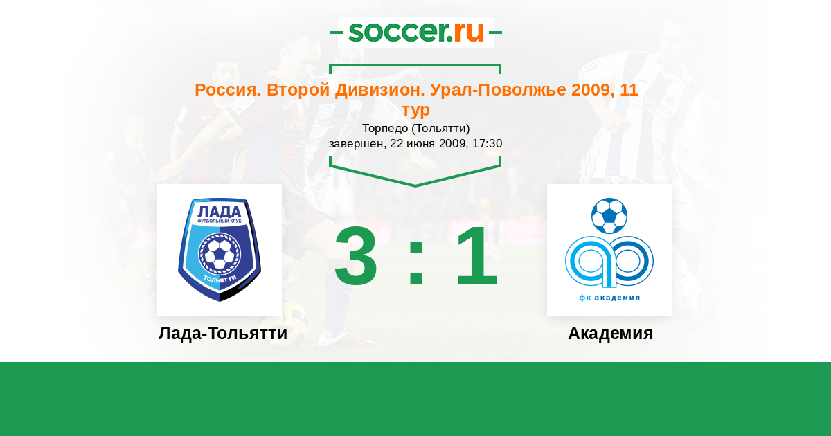 Россия. Вторая лига. Группа 4 01.10.2009 Академия Логотип футбольный клуб Академия (Тольятти) 1:5 Логотип футбольный клуб Лада-Тольятти Лада-Тольятти