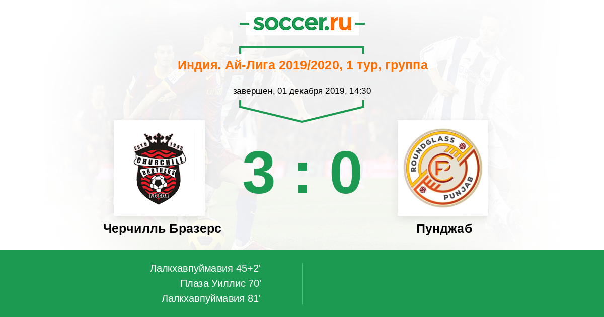 Протокол матча Черчилль Бразерс против Пунджаб