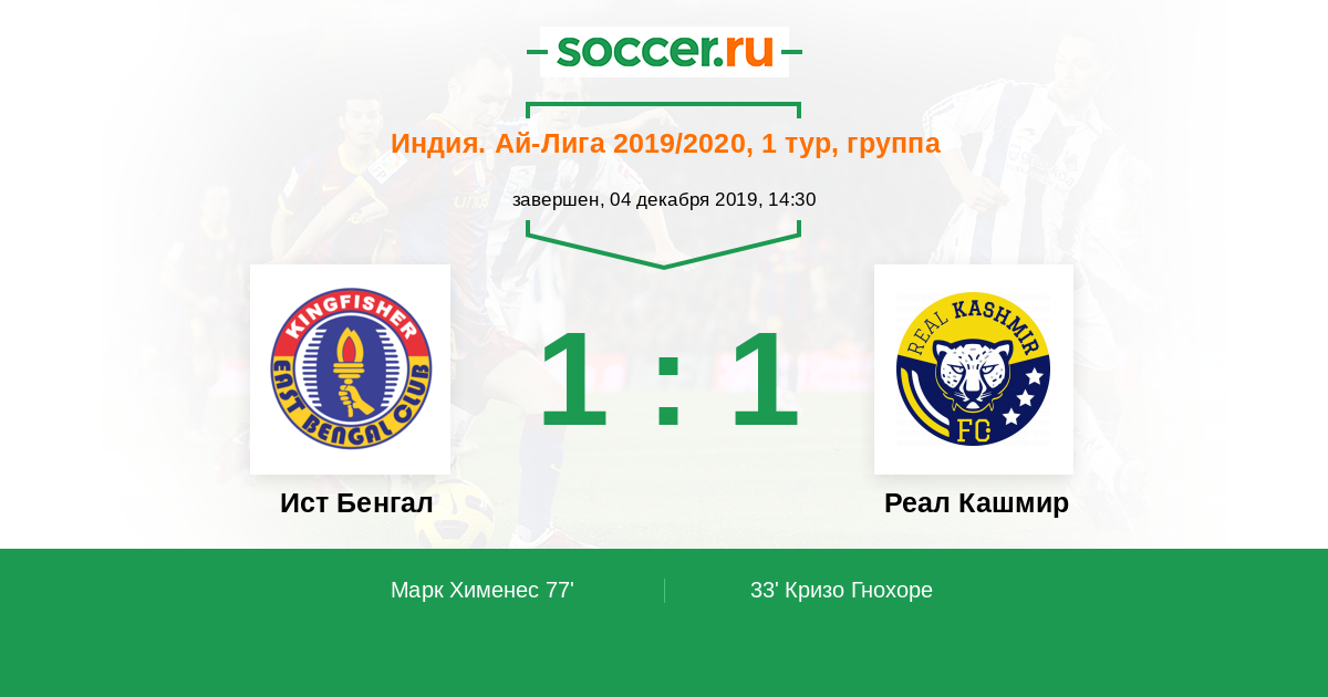 Протокол матча Ист Бенгал против Реал Кашмир
